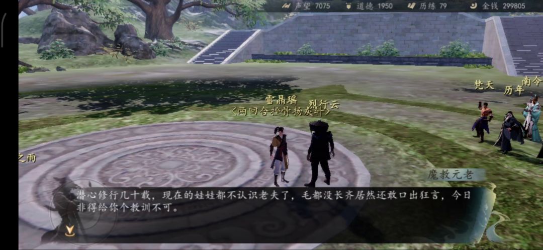 极限搭配出四域(阴阳柔毒每系150+,我动态有具体搭配),优化了一下,《九阳》替换为《八荒六合绝》,《易筋经》替换为《万象森罗》。其他不变。这套除了没连斩,其他都是接近完美了,连斩可以学对方有连续或者连战的招式。 自建门派线可以说是游戏我个人认为强度最高,因为要打朝廷日厂战(四连战),正道武林战(车轮战1),魔教江湖战(车轮战2),可以说把基本势力全部囊括了,而且自建门派线很多秘籍拿不到,不过作为补充有《万象森罗》,《不坏金身》和《玄武真功》二选一。看来后期官方都是发防御性功体可以看出来,站桩的必要,毕竟消耗还是很大的,无论是异常状态对策,内功强度,招式配比等都对玩家有一定要求。不过看过我之前一回合清场,两回合清场的大侠也知道有些搭配可以达成速清,这次就带来正常的清场站桩虐菜流程了,仅供娱乐。