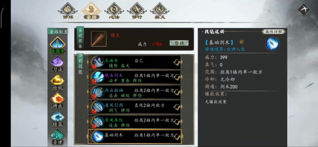 感觉这次录视频的阴剑真的有点脸太黑了,太阴间了吧。好多次预想的大部分回避都没触发,这就是被围着打。所以不稳定性和不确定性太高了,又因为是和阳剑一起做的,当中换心法招式就看的出来,基本自建门派线的阴剑是真的少,东拼西凑就那么几个,阳剑选择多,但是因为基础剑术的连斩,我基本都带了1-2回合剑招提升效率,所以阴剑真的强度方面和阳剑的确是有一定的差距,并不是危言耸听。后续可能会补一个阴暗器的流程。因为我怕劝退有些新入坑的玩家玩阴,也怕许多玩阴的大佬不舒服😔