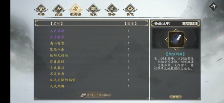 无聊分享一个全武学存档,第一个是我自己玩的,最后一个是新手村开始,倒数第二个是秦臻选路线