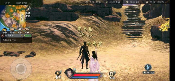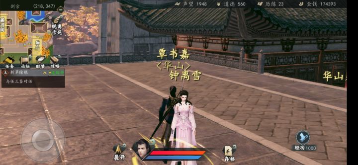 下一站江湖游戏里上清宫在地图的左上角处,上清宫里边会有一些宝箱可以领取,第1个是在清宫主殿旁边(592.742),第2个是在,松风观北边楼梯下去(596.547)。可以在杭州武馆处打一个男的,然后会邀请我们去华山之巅去悟剑,悟剑之后可以去洗剑山庄去找掌门问剑,在主线任务做到蓉城的时候,会有奇闻说上清宫有弟子被逐出师门,可以再去上清宫,弟子会给我们一本秘籍,然后再回华山悟剑会获得白首太玄经。在游戏