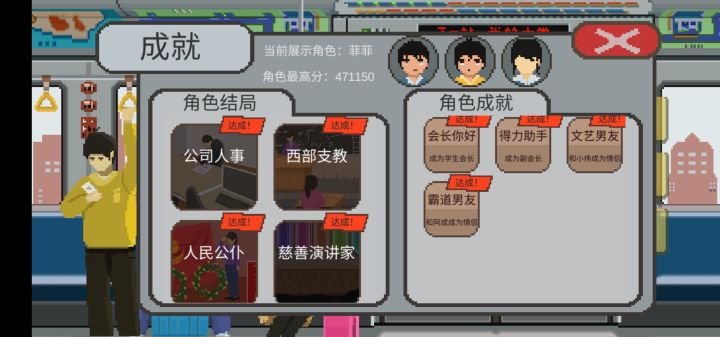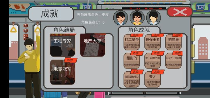 刚开始没有什么教程,所以有很多事情都没有摸清楚,在玩第一个人物的时候,挂科了很多,所以回家了好几次,后来逐渐摸清了门路,所以第一个角色和第二个角色都非常轻松的过关了,尤其是第二个角色,因为家里比较有钱,玩起来也很轻松,但是第三个角色我觉得真的很难,我的心情值和健康值一直就没在正常值上,不知道是不是我的问题,学生会的紧急任务也总是完成不了,尤其是一次派两个任务的时候,活力值根本不够用,必须得看广告才