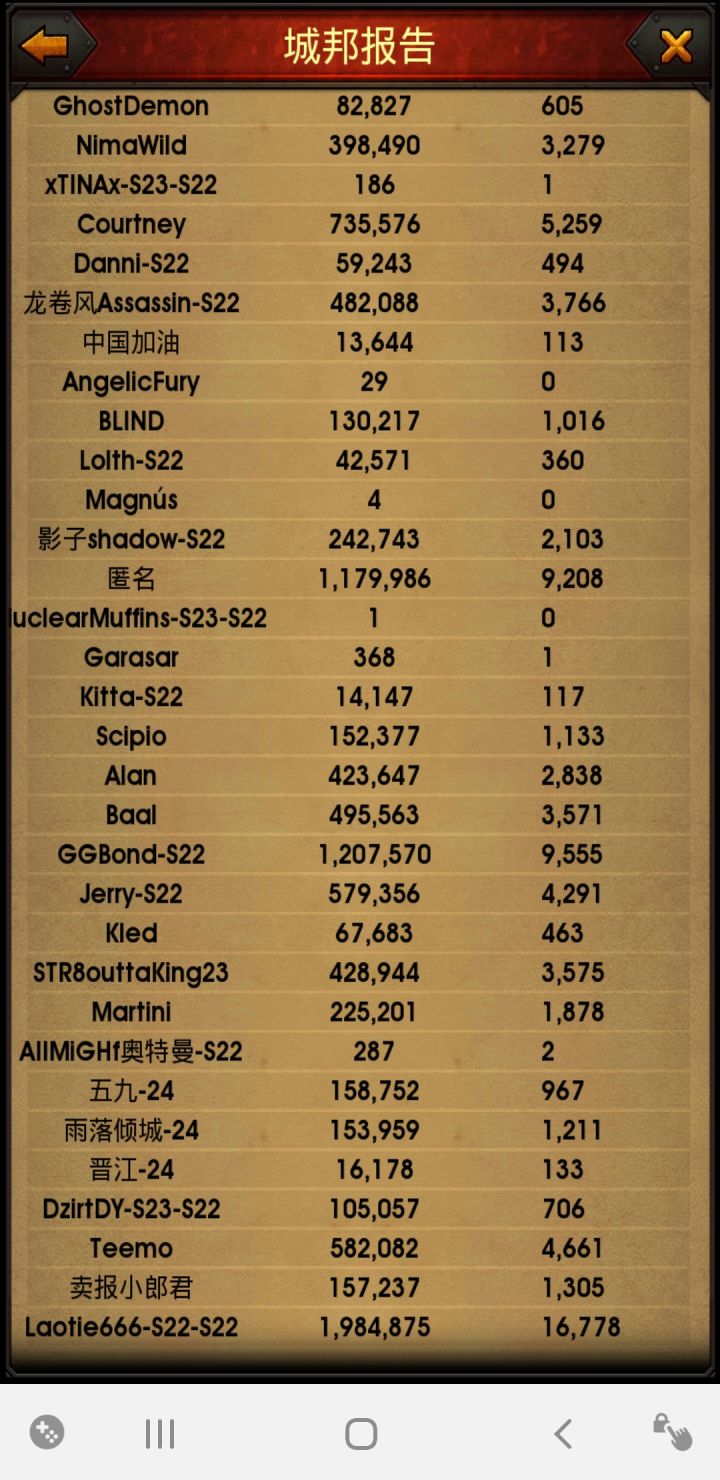 大大快点通过,参加活动哦渣渣自己镇楼, 我是11月24号22区刚开区那天接触的游戏,刚上线时候是被游戏配音吸引过来的,因为非常喜欢玩魔兽,算有点情怀因素,说回游戏,刚接触这个游戏,走了很多弯路,升级慢,一些必要的氪金小礼包什么也没有买,导致有些必要的加成比别人少,开始也没有加官方群咨询攻略什么的。开始玩游戏时候我加进了22区掠夺者联盟,纯国人联盟,22区还有另一个国人联盟,儒。开始的前几天区里还