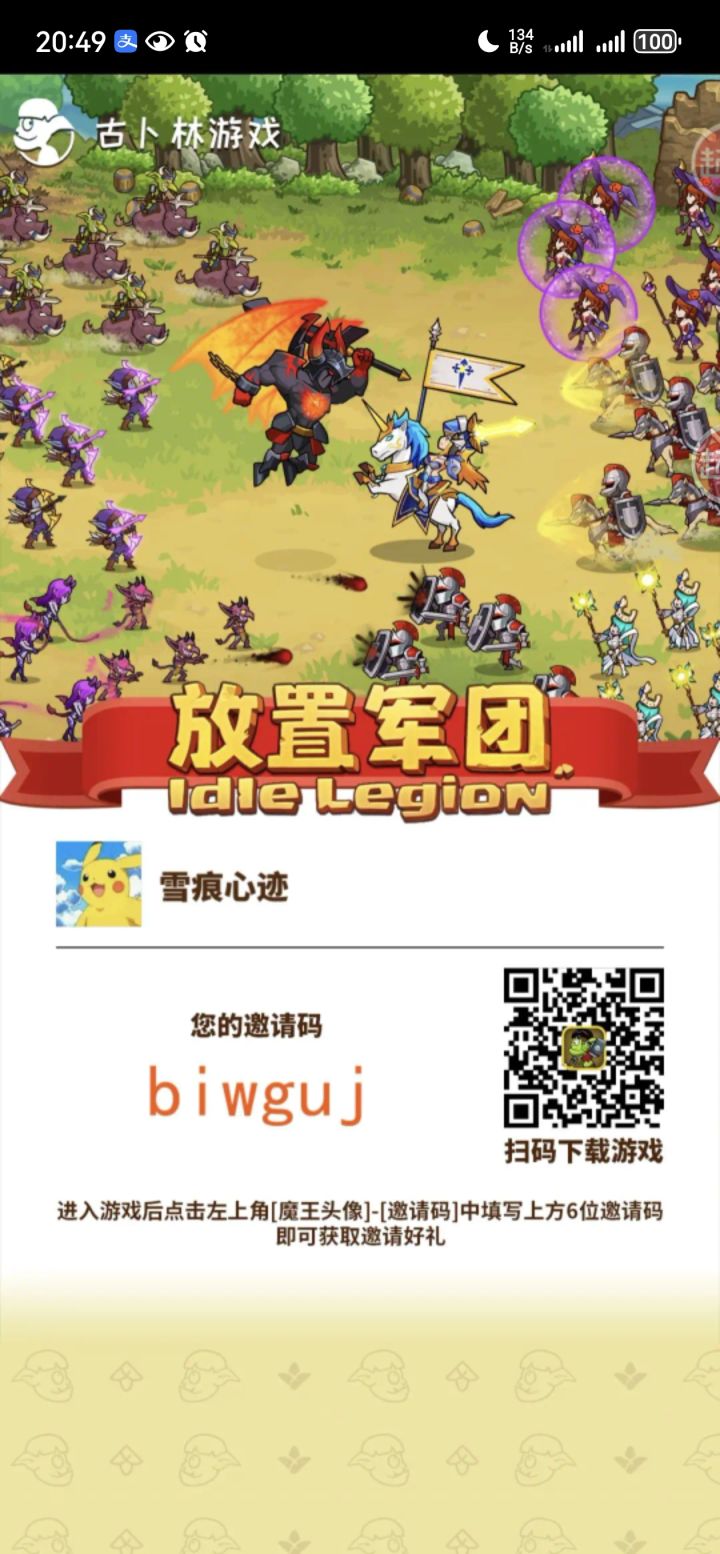 12月新手最新邀请码biwguj(进入游戏后点左上角[魔王头像]-[邀请码]中填写biwguj),即可获取被邀请好礼。[1000氪晶]输入邀请码开局就能领到1000氪晶。等15级修建了回收站,到了30级装备特产多起来,还能来我这高价售告卖(20倍起)多余武器特产,这是游戏里最重要的魔晶来源。另外关注公众号:古卜林游戏,输入以下内容,魔王5级后邮件获取福利(以下为兑换码)。1.放置军团666 (20