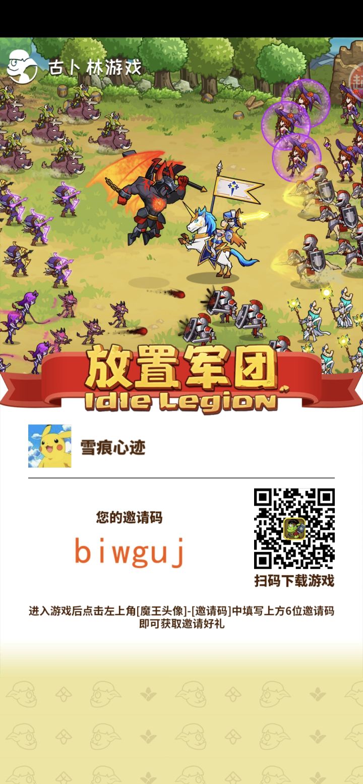 12月新手最新邀请码biwguj(进入游戏后点左上角[魔王头像]-[邀请码]中填写biwguj),即可获取被邀请好礼。[1000氪晶]输入邀请码开局就能领到1000氪晶。等15级修建了回收站,到了30级装备特产多起来,还能来我这高价售告卖(20倍起)多余武器特产,这是游戏里最重要的魔晶来源。另外关注公众号:古卜林游戏,输入以下内容,魔王5级后邮件获取福利(以下为兑换码)。1.放置军团666