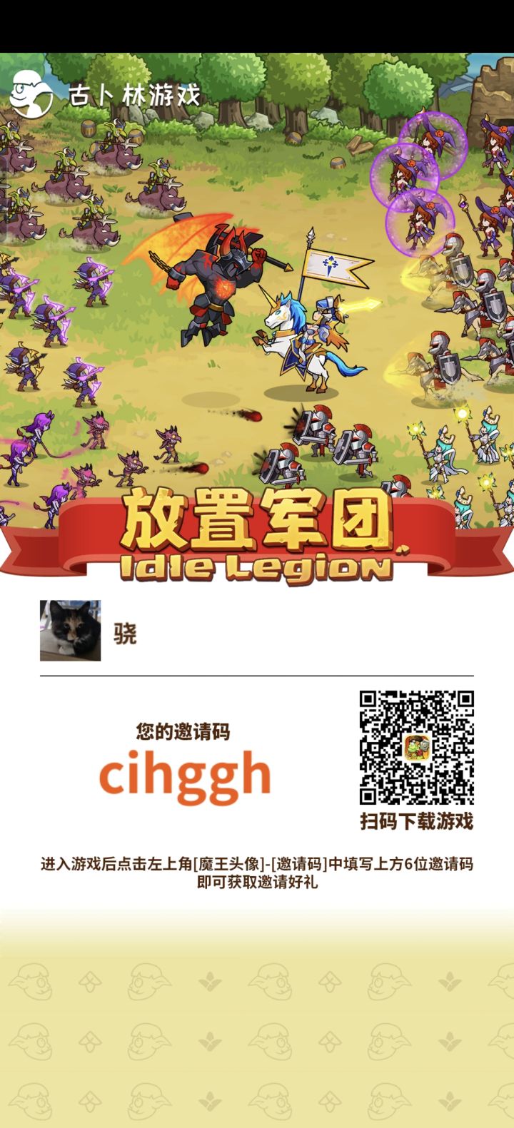 一、开局 第一件事情,领新手礼包 如果方便可以填一下邀请码(我这边也可以获得一些奖励你有什么不懂也可以游戏里随时问我) 邀请码:crngkx 领1000氪金, 开局24小时内才能填 新手的第一次十连抽为三选一卡池,可以在三个A级军团中任选其一!推荐小伙伴刷哥布林骑士 ,炮兵或影魔开局,刷图神器,自己懒得刷可以tb花钱让别人帮刷 选择优先级为哥布林骑士,炮兵小队,暗黑影魔。前期初始军团强烈
