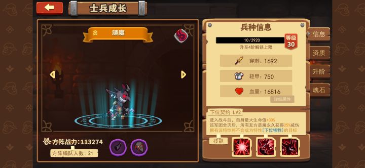 首先说一下,很多新人开局会很疑惑练些什么,我可以说,前期怎么玩都可以,没有什么所谓的恶魔流,亡灵流,乱七八糟的,这都是大后期的事情,前期混搭就可以,不是你想玩什么就玩什么,想出什么就出什么,迟早都要练,接下来我会分开接讲,前面是副本好用的英雄,后面是据点好用的英雄。一.副本英雄选择1.顽魔(必练)万金油,后排克星,可以扑到敌方后排身上,使其不能攻击,在死亡后还会发生爆炸,非常稳定的切后排能力