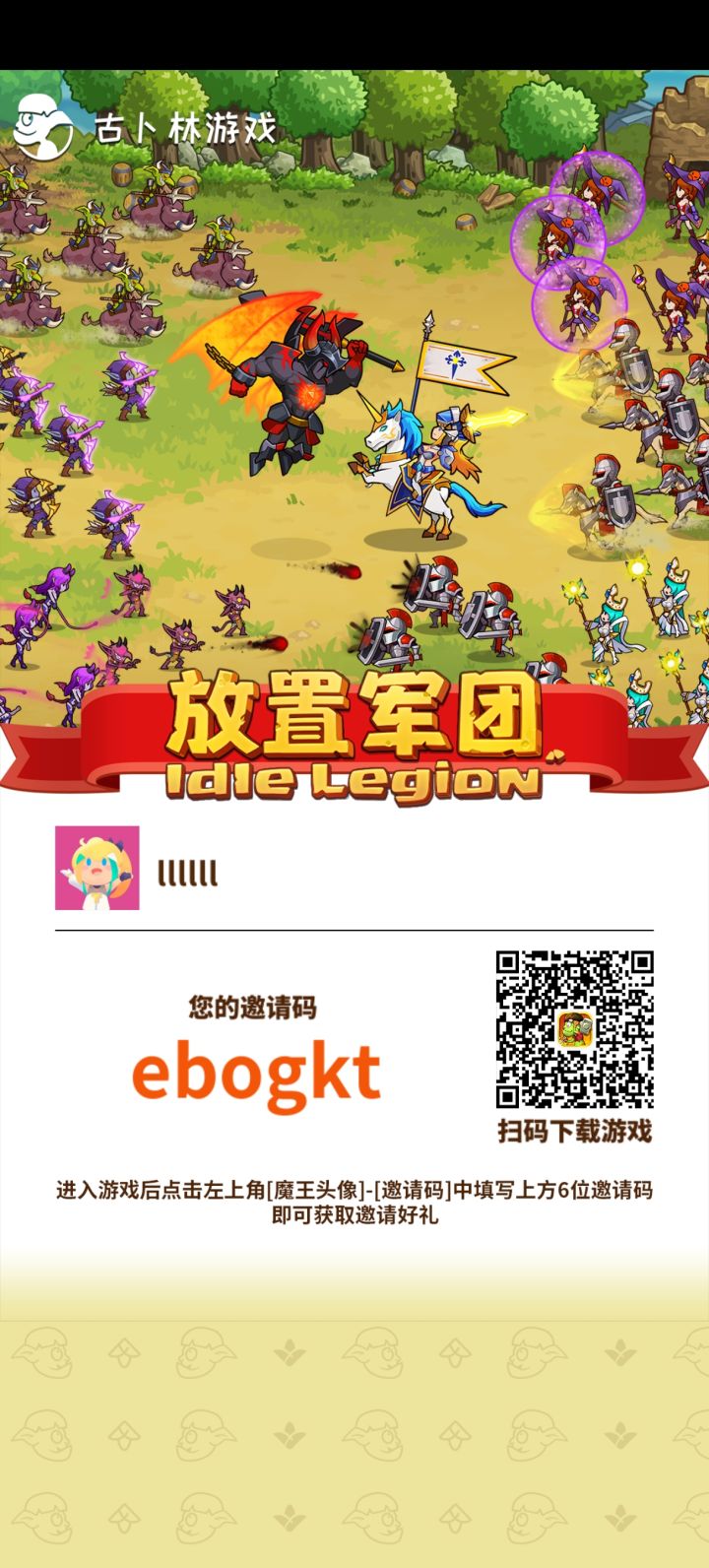 ebogkt最新邀请码 ebogkt 完成新手指引后,你可以点头像,然后输入我的邀请码 你可以领1000氪晶 我可以得一个临时工人,感谢🙏🏻 。 (只可以开号后面的24小时内填写哟) 每个关卡逢10以及20的时候,切记选择需要的英雄魂石,如不满意可以退出再来。 兑换码: 1.放置军团666 2.FZJT666 3.可靠的布道者 4.头秃古卜林们 5.我会回来的啊 6.fzjt