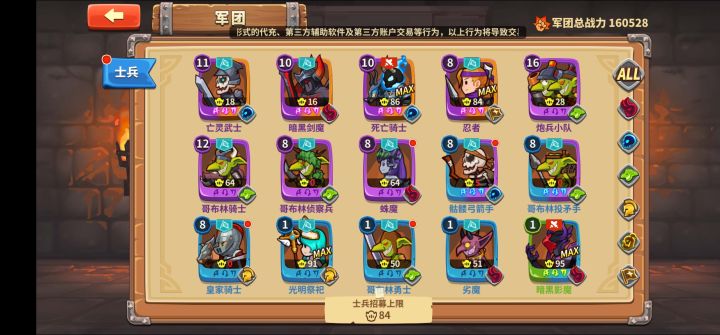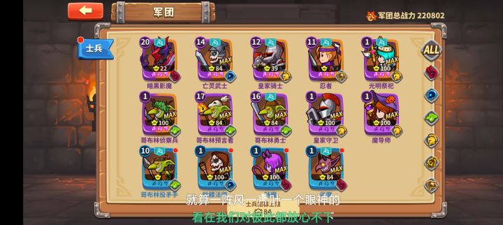 游戏大概就是这样子 我是一个刚入坑的萌新 该游戏对零氪玩家还是比较友好的 毕竟充钱也只能加快推图 只有充够一定数量才能跨越式提升 可以把这个游戏平时闲了没事点点 卡关了就慢慢玩 感觉有点养成类游戏了#放置军团