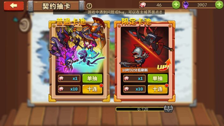 目前我只能试着存氪晶和抽奖码存到120抽直接一次性抽出黄色兵种了。不然我也不知道该怎么打。