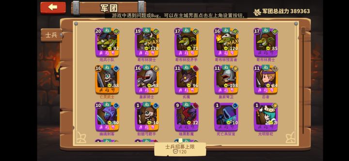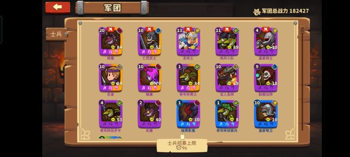希望官方对以下问题做出优化,我的一点小建议。希望把军团阵容做出个归类。不然每次找兵都看的眼花缭乱。比如哥布林军团:哥布林骑兵 哥布林勇士(6个同阵营的放在一排,已拥有的军团显示彩色,没有的显示灰色。 以持内推)第二个连环突击 希望显示兵种 不然有时候要调整阵行的时候分辨兵种有些困难。 两点小建议,希望官方采纳