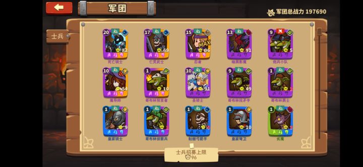 出bug了,还有有些时候兵站着不动让别人打。 希望出个资源回退,例如那个忍者用途不大,但是呢不用还不行,然后我出了个顽魔,发现供不起,能不能出一个把其他没用的人物资源进行重置,不然老是卡关没法玩啊,希望作者大大搞一个。