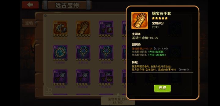 为邮件奖励而来,在这里先吐槽一下作者直接把兵种强化属性变成boss,就这么说吧,忍着有一个a死人刷技能cd+被打瞬移+木桩。意味着只要伤害高,1滴血(没那么夸张)的都可以秒杀你,搞得我推线的时候高出敌人4万还是给人家干碎了,对面就剩个忍着不停飘,打都打不着。建议作者自己考虑一下技能再做成boss,然后就是这个魂石,太无语了,绿色绿色的给你。升级不知多久,有这功夫我玩别的他不香吗。要不改爆率要不每天起码能十连好一点(估计说了等于没说),另外前期的发展有点坑了,工人搬砖是真的慢,钱呢也少。很难升建筑。魔王等级的条很长,建议前期可以考虑给个1-2天的加速让新手体验一波。