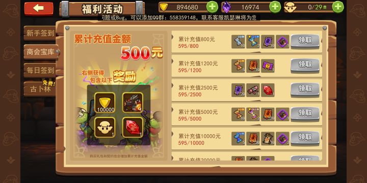 充值500以上没得充值礼包已经7天了,联系客户,客户又不加。