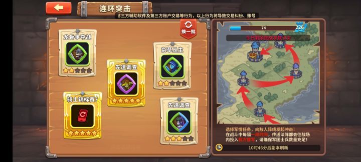 一、开局 第一件事情,领新手礼包 邀请码:cuwgmi 领1000氪金!!变成好友后面回收装备换金币! 然后一路跟随新手任务的指引能够快速通关1-10,我们会得到2700氪晶,也就是第一个十连抽!新手的第一次十连抽为三选一卡池,可以在三个A级军团中任选其一!打算玩下去舒服的小伙伴们可以适当刷一下初始军团! 选择优先级为哥布林骑士,炮兵小队,暗黑影魔,哥布林预言者,骷髅弓箭手。前期初始军团