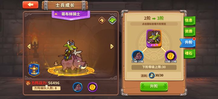 嗯,刚玩5天。想通关第六,20。看通关报告,战力最接近的是一猪骑30级的。想升级骑士,但是嗯又想升级预言家才说先攒攒。因为没有经验书。没有买卡。