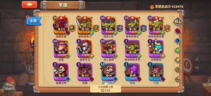 一、开局第一件事情,领新手礼包邀请码:ebvgqr,领1000氪金!!然后一路跟随新手任务的指引能够快速通关1-10,我们会得到2700氪晶,也就是第一个十连抽!新手的第一次十连抽为三选一卡池,可以在三个A级军团中任选其一!打算玩下去舒服的小伙伴们可以适当刷一下初始军团!不想自己手刷去某宝tb上有帮刷的。选择优先级为哥布林骑士,炮兵小队,暗黑影魔,哥布林预言者,骷髅弓箭手。前期初始军团强烈