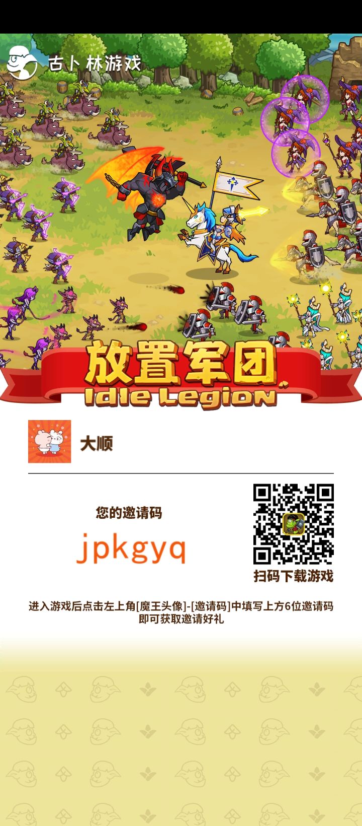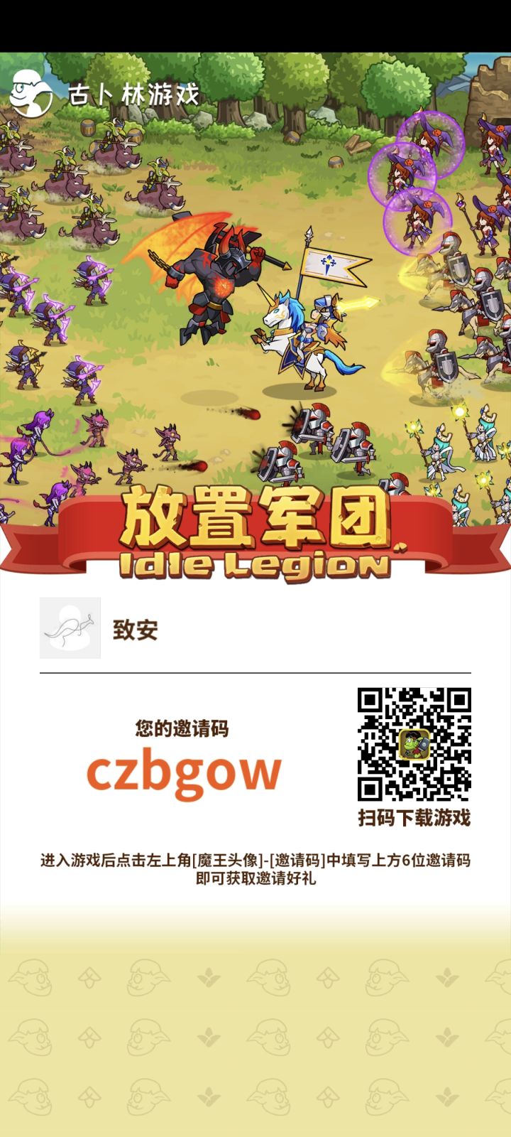 福利说在前:- - - - - - - - - -填写邀请码了吗?我的邀请码gqugga。填写后可获得超值奖励:1000氪晶,互相拜访对方。- - - - - - - - - -古卜林公众号礼包码:FZJT666放置军团666头秃古卜林们可靠的布道者我会回来的啊- - - - - - - - - -- - - - - - - - - -一、月卡长期玩,想玩得更加轻松点的