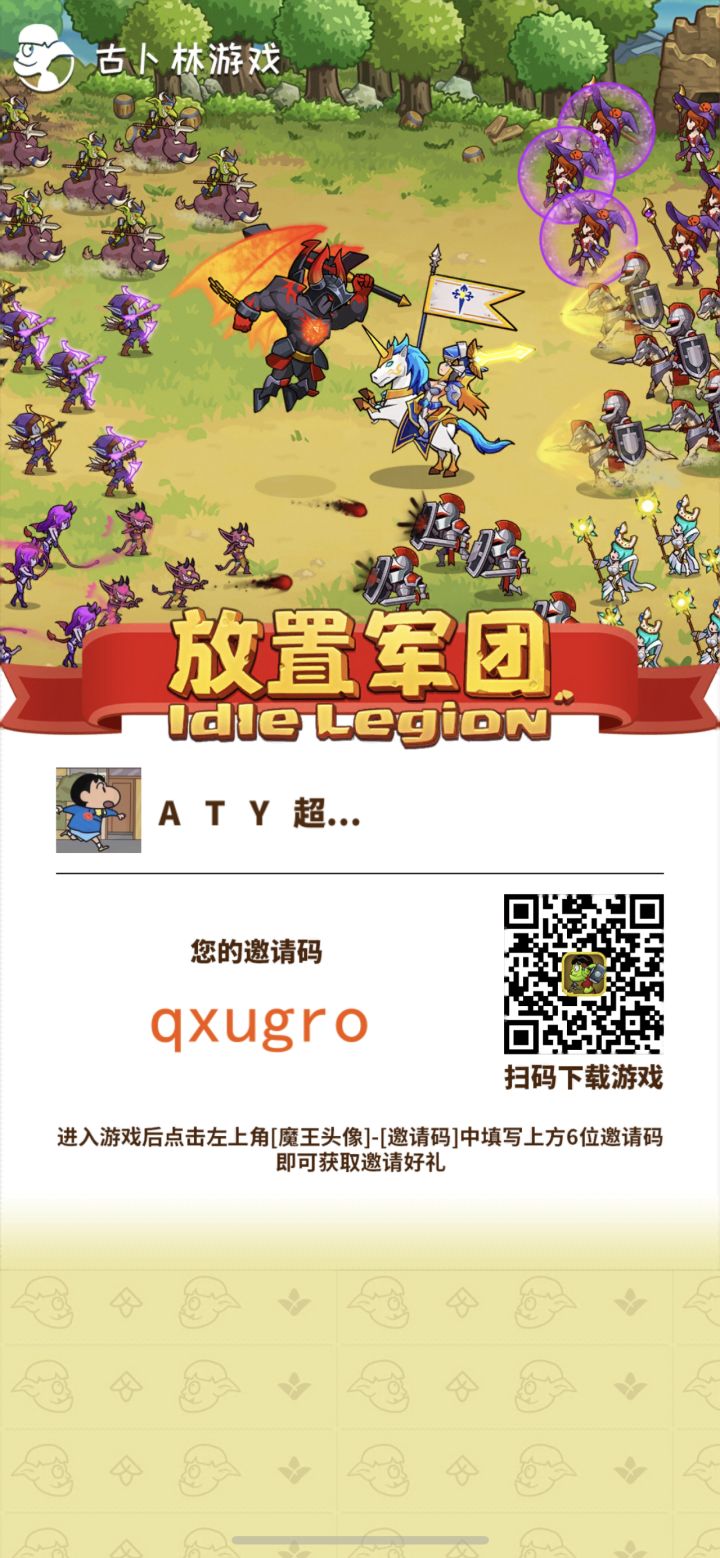 邀请码:qxugro开局就能领到1000氪晶 我能领到1个工人 ,后期还能来我这卖高价特产,大家互惠互助,(点左上角头像,输入邀请码)另外关注公众号:古卜林游戏,输入以下内容魔王5级后邮件获取福利1.放置军团666 (200氪晶)2.FZJT666 (10000魔晶)3.可靠的布道者 (500氪晶)4.头秃古卜林们 (20000魔晶)5.我会回来的啊 (两个瓶盖)6.奉上诚意祝福