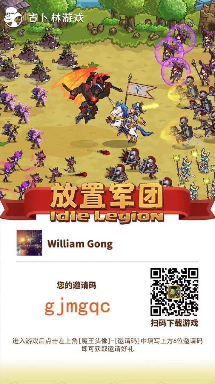 微信关注公众号古卜林游戏发送微信礼包码:1.放置军团6662.FZJT6663.可靠的布道者4.头秃古卜林们5.我会回来的啊6.献上诚意祝福个人邀请码:gqcgqb(开局内24小时填写有效,奖品有限,互得1000氪金并加好友)gqcgqb