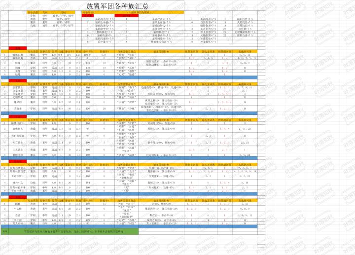 放置军团宝物版本已经上线有一段时间了,宝物中有一些词条的伤害种类加成,有的人可能不太理解,本人也是利用了一下空闲时间做了一份关于各兵种的伤害类型以及一些基础属性的整理汇总,希望对广大新老玩家有些许帮助,祝大家玩得开心,欧气十足!后续将会做关于兵种如何配置相关宝物的攻略,敬请期待!来自叶落知秋,一个普通的游戏爱好者。