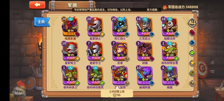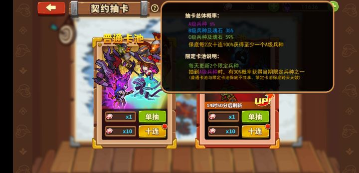 放置军团最加战力的还是军队阶级,A+可以让他具备全部技能,要玩的话至少要陪养到A+。但是A+远远不是重点,我们要的是S+!(虽然我也还没有哈哈哈)升阶途径可以看我之前几篇攻略贴。这里我简单介绍一下用抽卡提高军队阶级:抽卡系统分为:普通卡池和限时up卡池首先我不太推荐大家使用普通卡池,当然我也理解第一天玩,有好多钻石,抽卡爽一爽方便过关,都是可以理解的。那么希望大家能在普通卡池抽到这几种军队