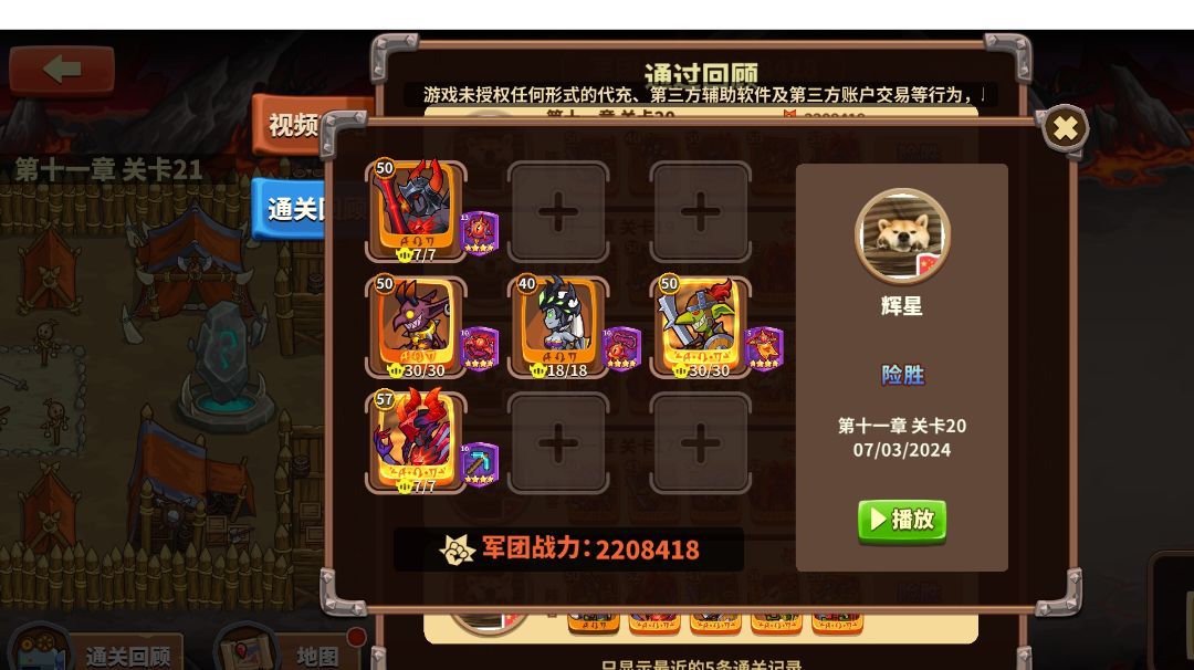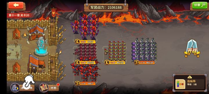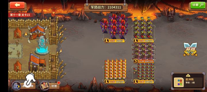 189万战力过11-20人王 影魔练度高点,其他的一般,宝物用加血量的存活时间长点 上猪骑整个阵容的站位分散点,阵容分散不会被人王一波带走,靠宝物输出 之前一直用勇士,赌影魔开4个大,打了几十次没看到一点希望就换一种阵容