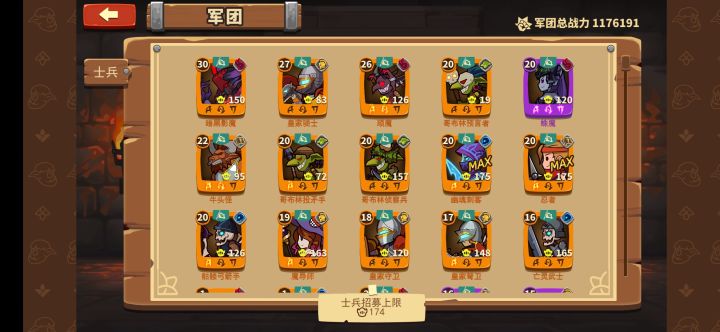 因为不用支付宝,又不支持微信支付,一直慢慢来,在本周削商店之前,每周的补给是足够的,慢慢打到了通关,随便回顾一下。送的亡灵战士和哥布林投矛可以用到20,强的要命,其他位置有啥用啥,不要多升,节约资源,免得后期回来打早期据点。送的忍者可以用到30,另外几个30尽量用最终主力,抽不到就等等。不要过度把资源集中到骑士,先凑据点的远程,而且过分依赖骑士在第五关会被阴的。这个阶段用固定送的攒每个族最有