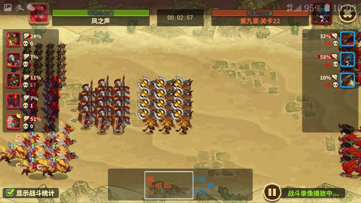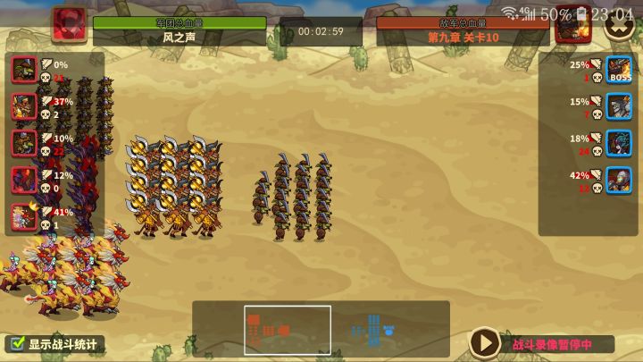 8-25/阵型推荐弓骑牛麒蛛8-30通关毕业/阵型推荐弓蜘牛骑麒阵容没有截图打算通关的小伙伴可以做个参考战力127w感觉最难的还是25试了几乎一百多遍,因为影魔觉醒慢,换成同40j牛头一路过,帮麒麟顶下伤害同时快速清理对面骑兵拖二跳,同时骨弓能传染蜘蛛的丝网打到后排,尽管队伍资质没有一个L,用这个控制思路S阵容也是能打出战力差来的大家不妨一试麒麟S+50武器50其他40牛头S+40装备40骷髅弓S+40装备40蜘蛛S40装备40