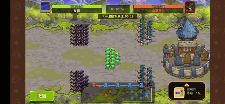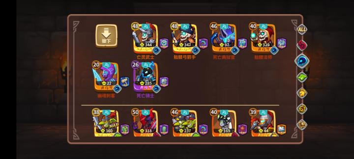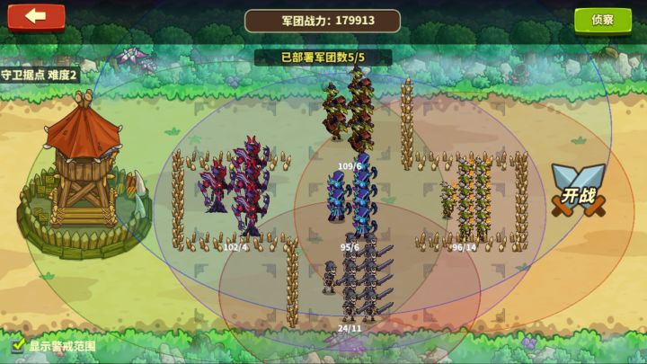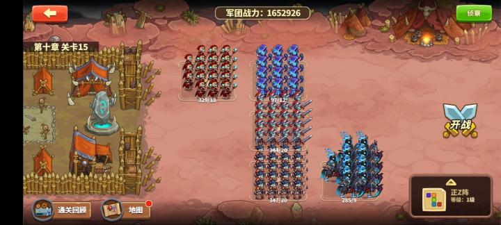 重点是死骑的等级不要太高。然后加到26级。尽量给死骑带个加攻击的套装,再加上骨弓射过去的两箭,把炮解决掉,其他的就好搞了。#放置军团 我我看其他人攻略里都是把典狱长和骨法升到40,我测试了,不升到40也行。就是按图上这么摆。能解决掉泡,一切都好说。