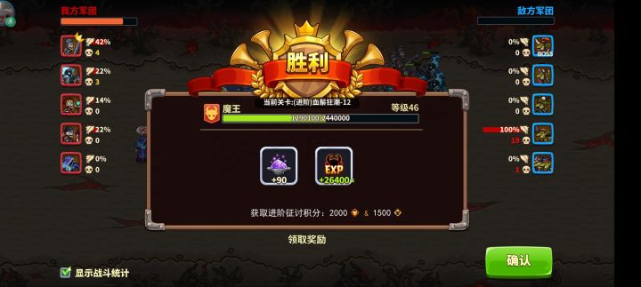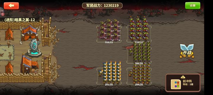 阵型:十字阵兵种:26级A+皇骑20级A+哥预20级A+顽魔20级A+蜘蛛20级A+影魔思路:哥预技能傀儡当前排还有一个骗蜘蛛网的作用(打魔法伤害),我方蜘蛛则控制前排boss,顽魔飞进后排,影魔也有全场aoe+控制总结:得看脸(顽魔??),主要还是战力太低,想稳过多练练顽魔和影魔,还是新手,请各位大佬多多包涵🙈🙈🙈。