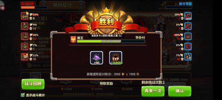 如上月所料,11毫无意外拿下试了两套,前纵后纵均一通,各自特点分别是前纵后排伤亡多些,后纵前排伤亡多些特喵的损失1500氪晶,上周进阶差400结果睡过去了