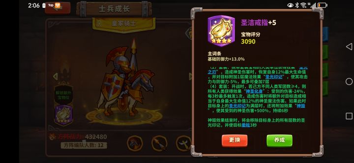 两件人族套装造成神圣魔法可以恢复自身12%的血量。神圣光印每层减5%的攻击和防御最多7层。四件人族套装每3秒一次,攻击额外附加额外生命12%的魔法伤害,减伤24%。圣神光印标记到达7层圣神伤害增加500%1,就是带了套装没有自带神圣伤害的每三秒都能恢复自身12%血量。2,光明祭祀有很大的几率可以利用圣光印记打出5倍伤害,是这个意思吧