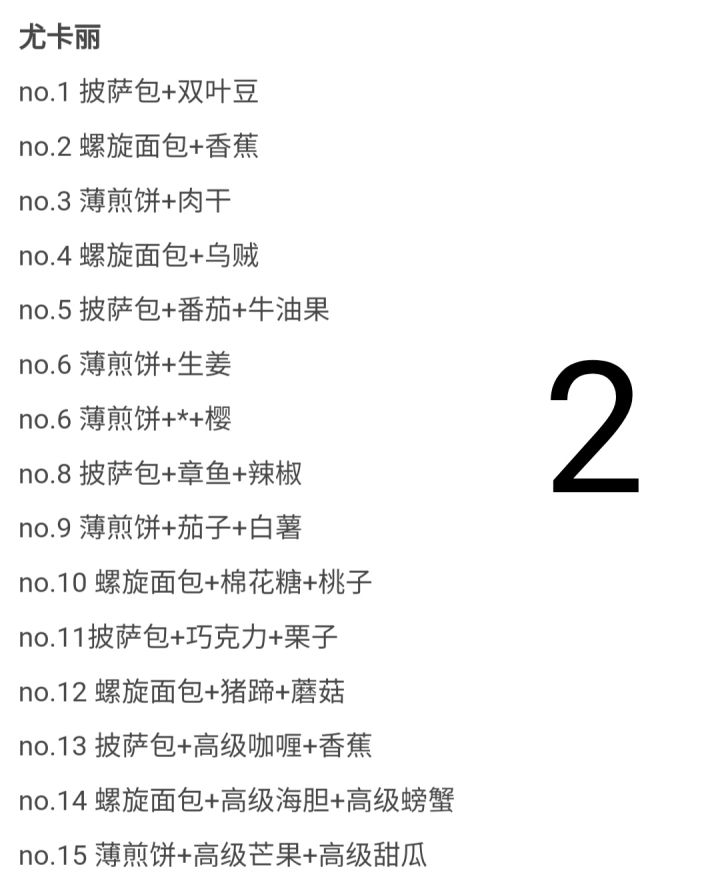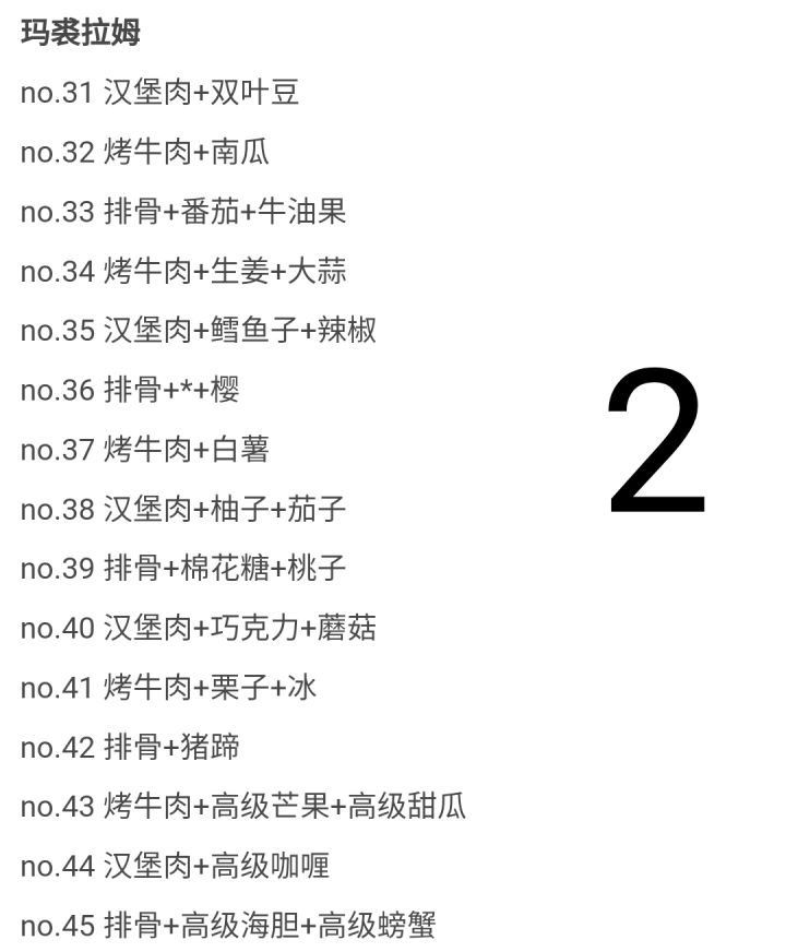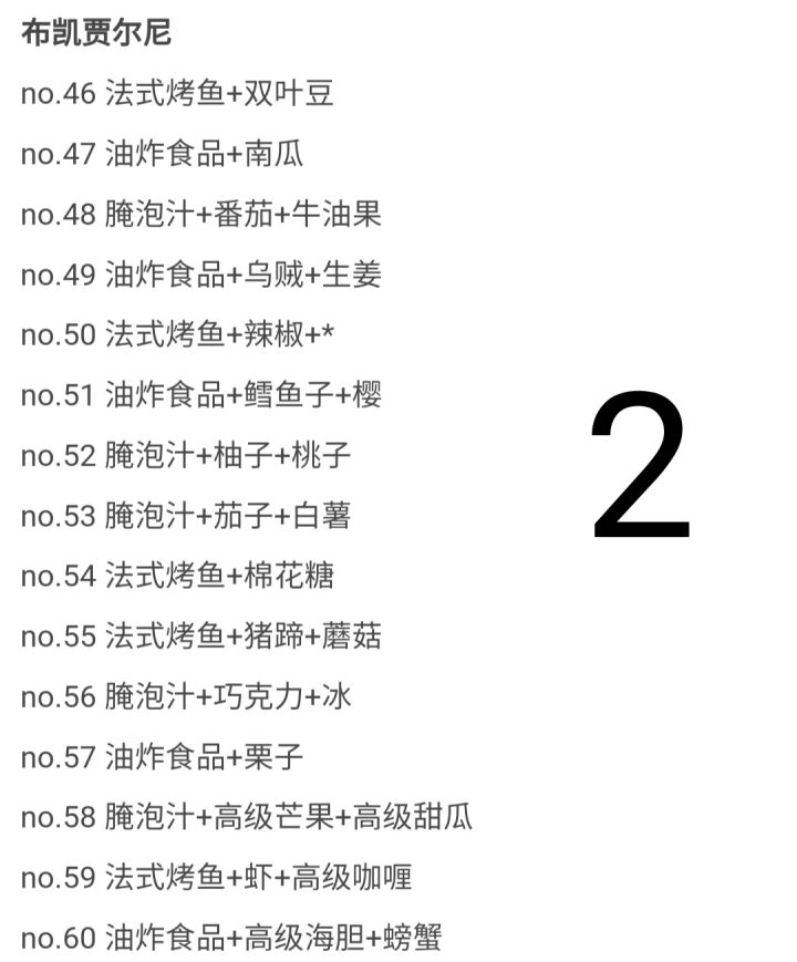 第二部美食市场菜谱&套餐论坛大佬之前发的好像不是第二部的攻略,所以去网上搜了发来这里,大家这样看可能会方便一点