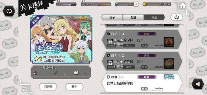 学园活动上线已经有一段时间了,不知道各位冒险家们,有没有成功抽到自己心仪的角色呢?本期就给小伙伴们带来都市学园限定活动:冒险谭与英雄试炼的最大化收益解析,下面一起来看看吧。——————【冒险谭收益】——————此次冒险谭活动的收益也是相当给力的,除了英雄的恩惠以及各种道具之外,丰厚的虹水晶奖励也是拿到手软,小伙伴们在此次的冒险谭中可以获得的主要奖励来源有两种。第一种是通关所获得的各种道具奖励