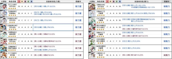 【心得】懒人用2~4星支持者技能 分类快速查询