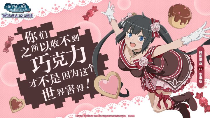 ——情人节快乐——冒险者大人,今天有和在意的人一起度过吗?要不要……收下我的巧克力呢?今日礼物:50免费虹水晶派送对象:全服玩家今日份奖励已通过签到页面派送给各位冒险者啦~各位记得查收礼物盒喵~今天欧拉丽也有在举办的活动喵,详情请9日活动预告喔~今后也请多多支持《地城邂逅:记忆憧憬》!#在地下城寻求邂逅是否搞错了什么# #地城邂逅:记忆憧憬#