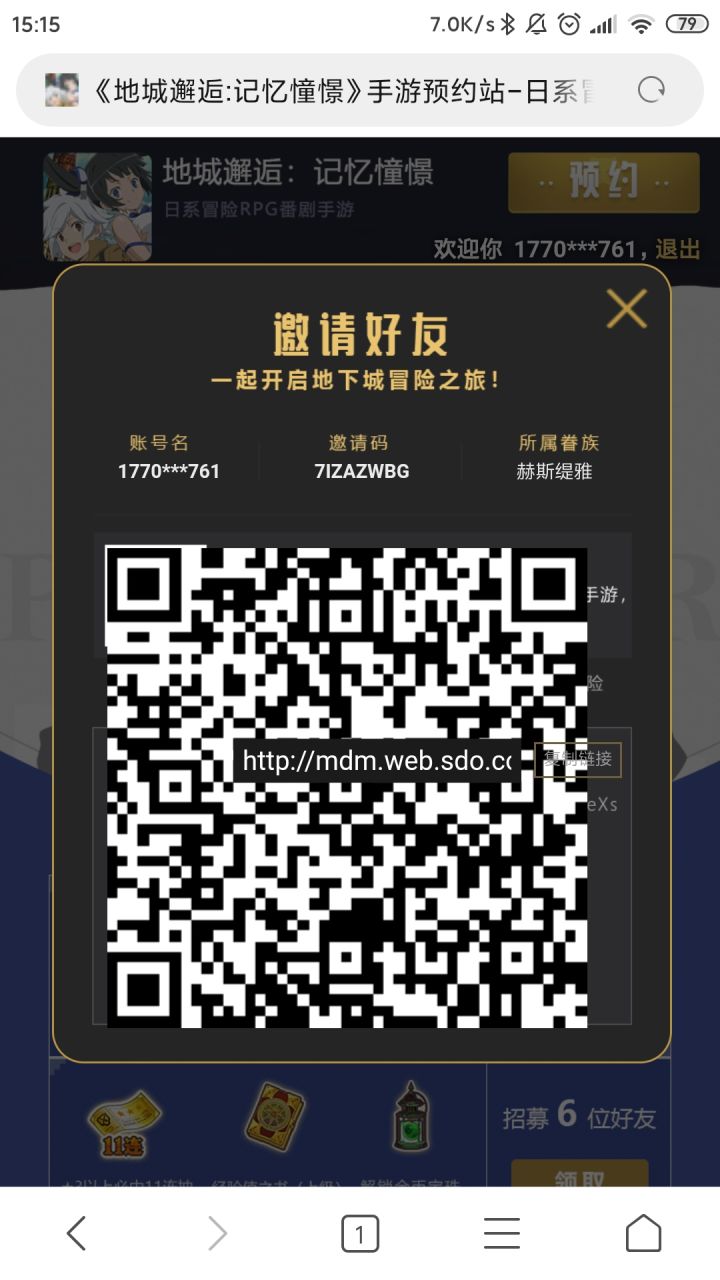 http://mdm.web.sdo.com/web1/index.html?sharecode=7IZAZWBG点击链接或扫我的预约码加入游戏,能得到一个四星必中抽卡券,点击加入眷族又能得到一个四星,还能得到3个二星抽卡券,1个三星抽卡券,大家快来加入吧!