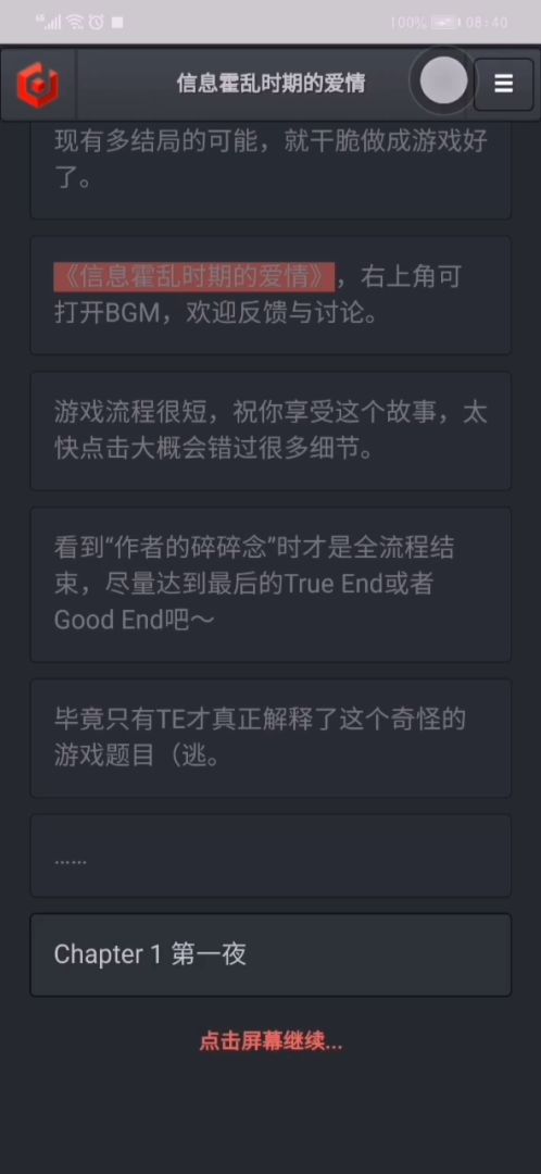 相当不错的文字向游戏啊,主要剧情很流畅,提供的选择逻辑性也强,才第一天,我就代入到剧情里了。记录下看似平淡,实则紧张的第一日: