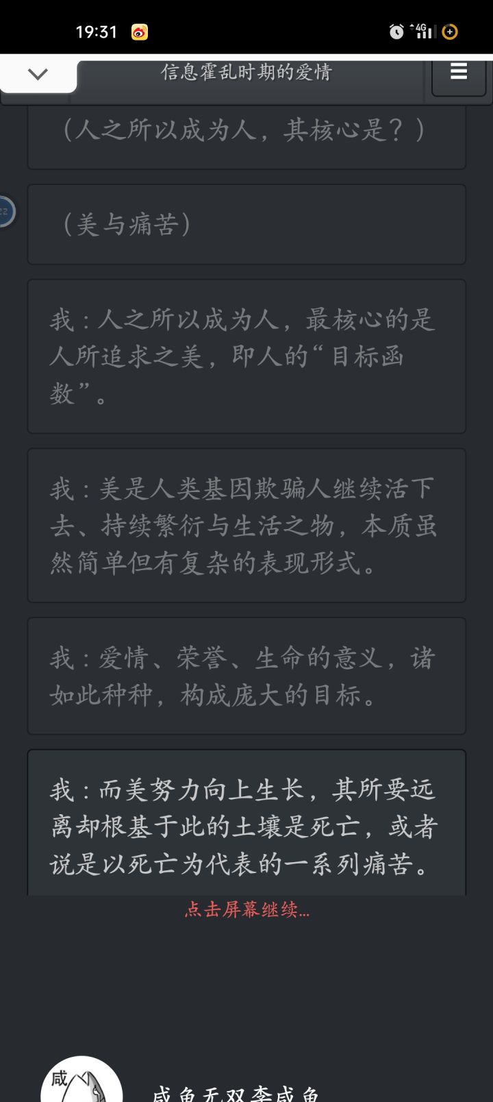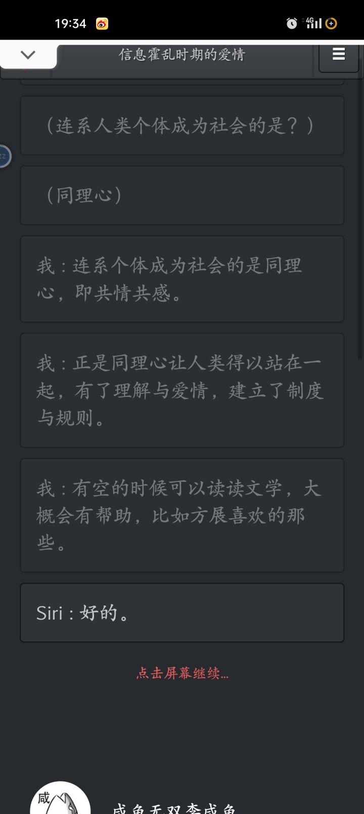 就像是一场梦醒了还是很感动,,,我第一次直接安卓用存gg,第二次直接te怎么说呢,把自己带入主人公感受着文字下的细碎的感情,一个想说却没说出的爱,另一个想爱却不敢说出口。