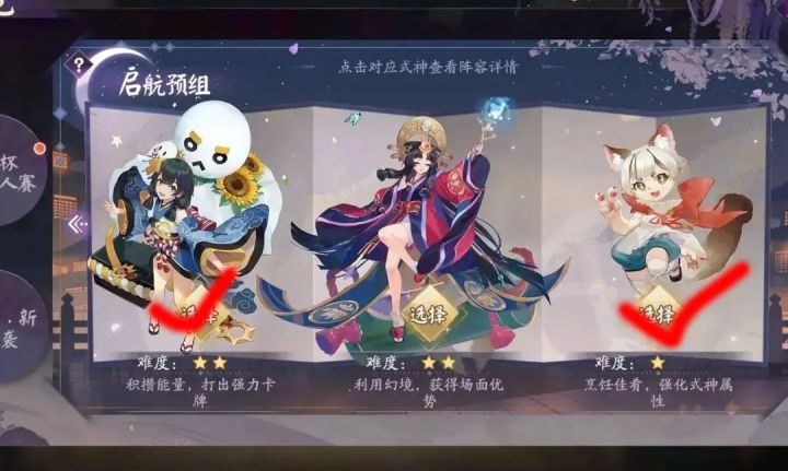 最近因为牌停更,部分回归玩家及新入坑玩家不熟悉环境,故出此指南。牌卡组一般分快攻(抢血),中速(二勾发力),慢速(三勾发力),如果卡在对面三勾前(己方先手的话就是己方升三勾的回合,己方后手就是全部升二勾的回合)把核心式神击杀,可以起到打乱对面节奏或者苟延残喘的机会。指南主要为单核阵容制造,如有补充,欢迎评论区交流。1.凤凰火 三勾炎舞启动容易斩杀2.跳跳妹妹 少见式神,阵容核心,三勾觉醒配合