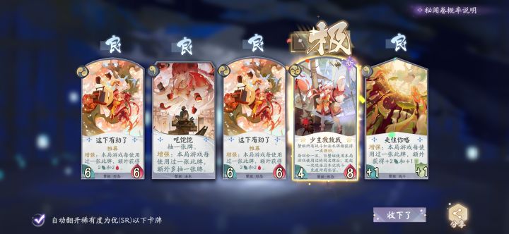 过年这几天,猪厂是不是修改了百闻牌的爆率,已经出了4张SSR了😂比过去一个月出的还多,良心了一会啊😆