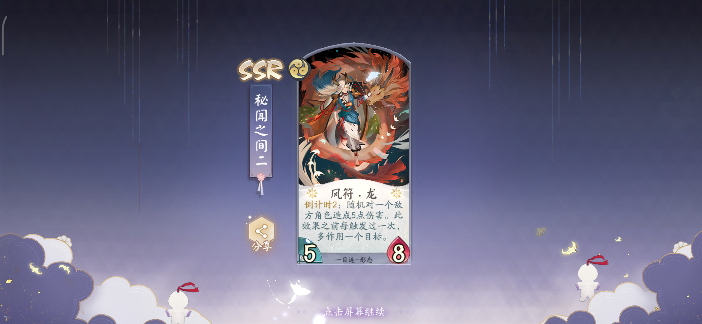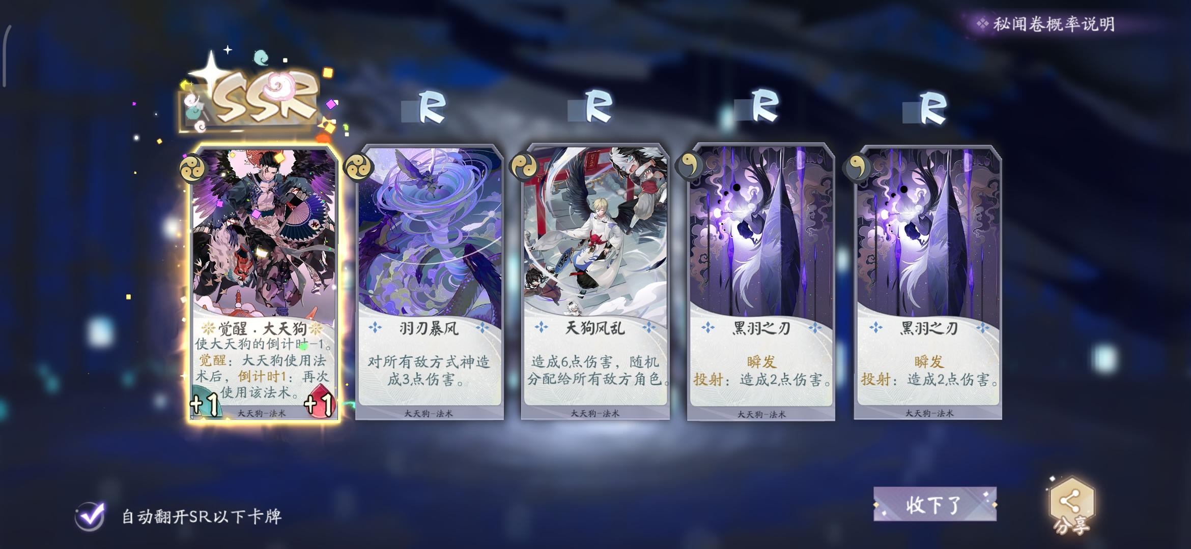 想着怎么拍vlog的时候上线签到顺便抽卡,然后大天狗哈哈哈哈哈哈哈我现在霜雪流(两张雪融)成型,妖刀快攻流成型,正想着下一个流派玩什么好,结果就给我来了觉醒大天狗,舒服了