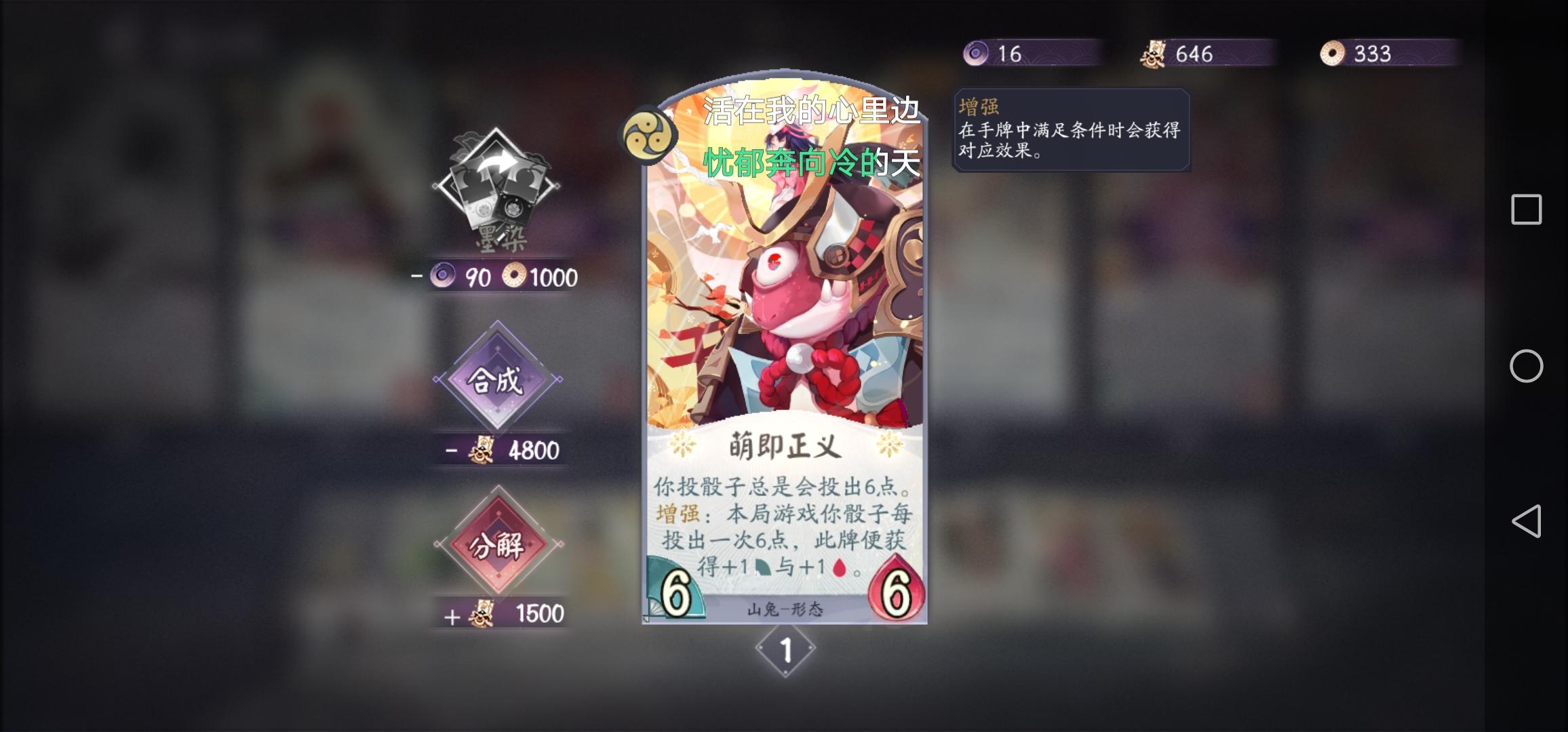 输了一晚上然后还给我我这个。我可是刚刚把青蛙觉醒给融掉了呀