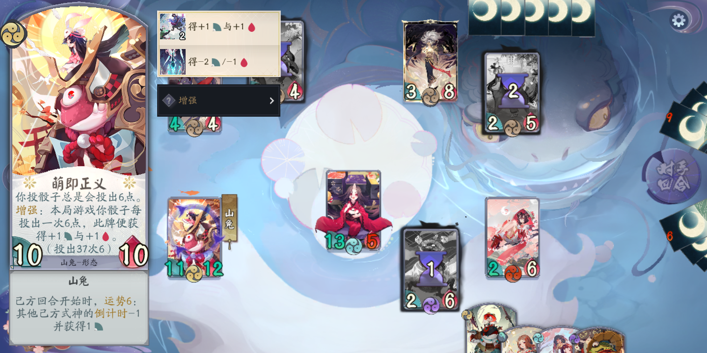 我感觉对面绝望了,原本ta把我打到还剩七滴血,然后ta判官没带3勾必死,原来我一直怕ta判官直接判死,然后发现ta没带解牌,就快乐起来了,座敷直接奶起来,“这把算我赢”开局就有,被青蛙烧了,还有那个薛定谔的青蛙,死了加成还在,骰子流真快乐