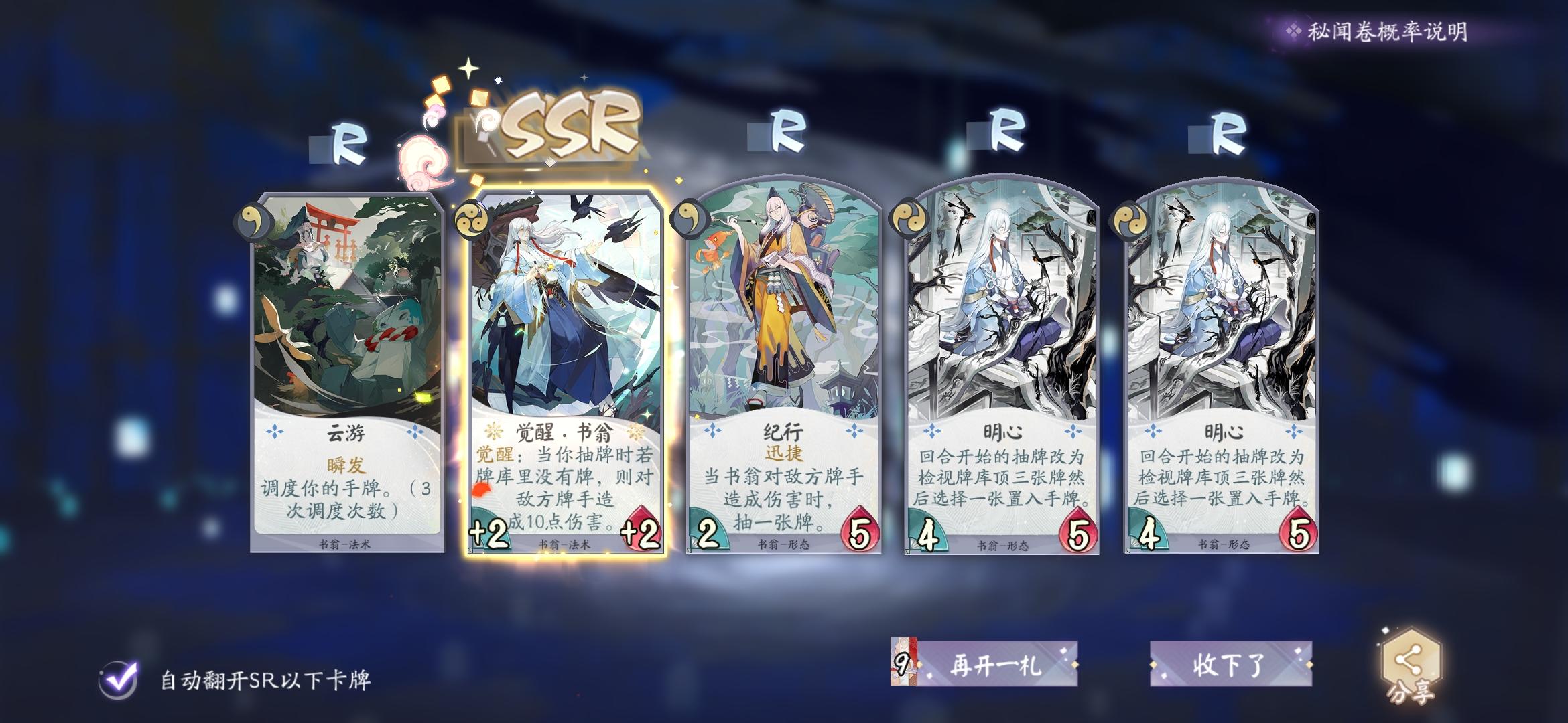 在第一抽的时候青灯行小姐姐飞上来了是什么鬼。。 然后一抽就中了一个ssr 再一抽又中了一个。。