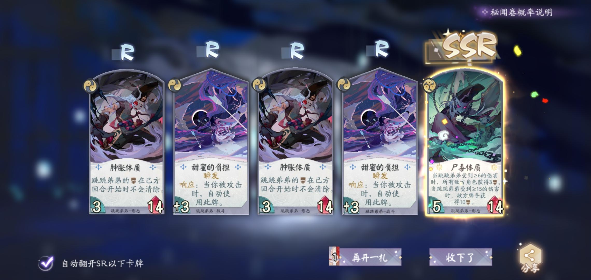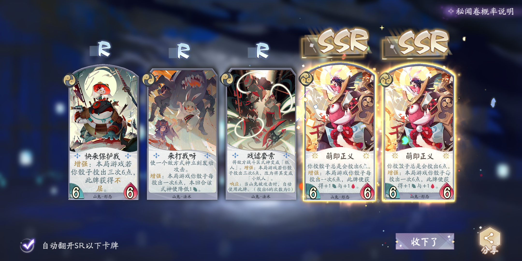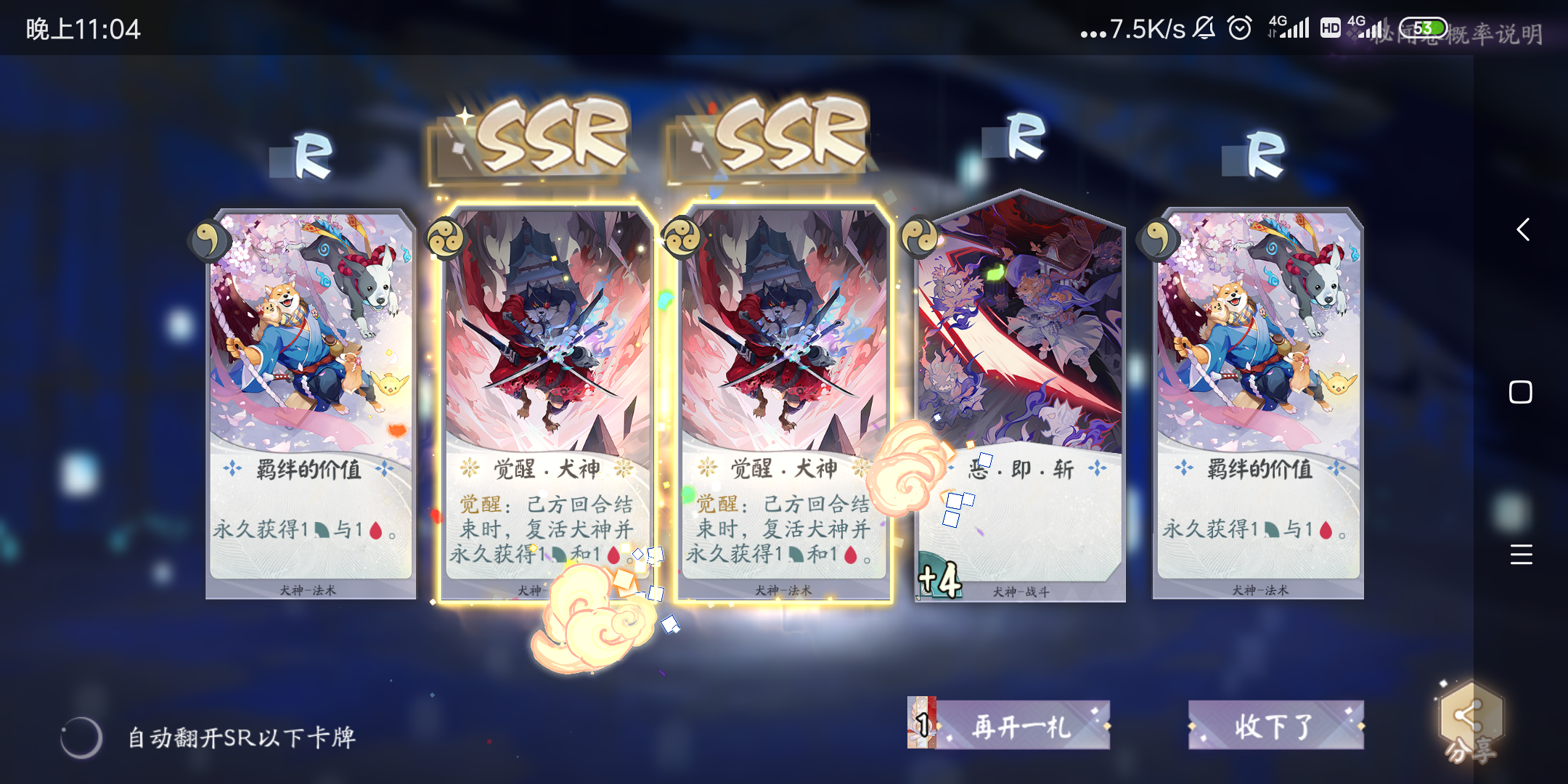 今天晚上是怎么了?签到领一个ssr,买了两包卡开了一个ssr,还有一个sr,还都是我想要的,开心ヽ(○^㉨^)ノ♪