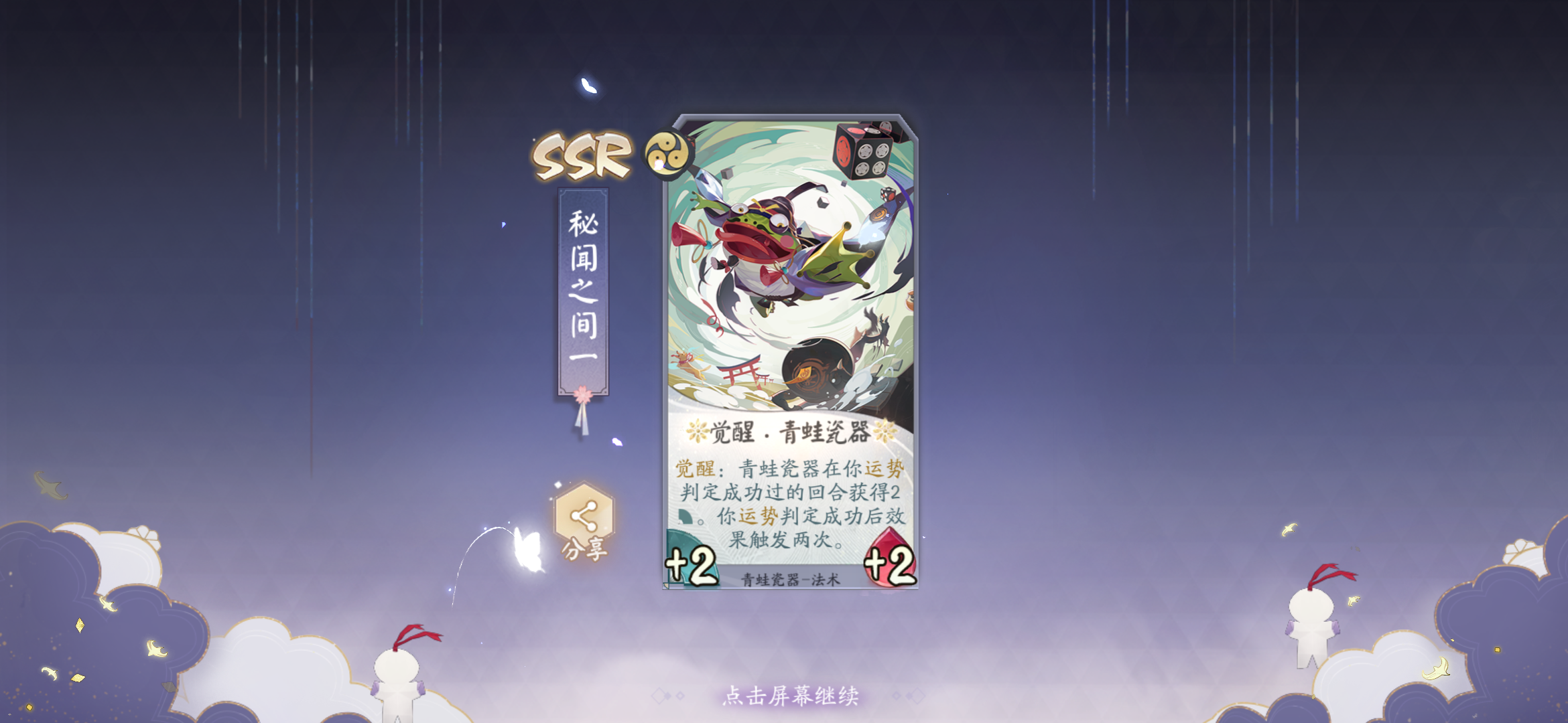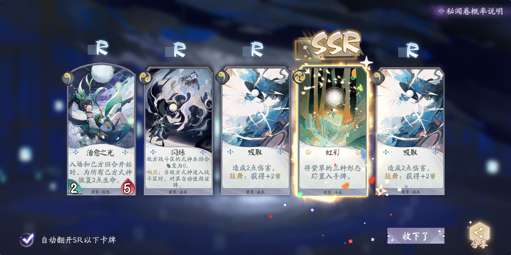 十包出了三张ssr,免费两次怪谈直接通关两个章节,今晚的运气怕是以后都不会再有啦哈哈哈哈哈最后祝各位都欧气满满,ssr抽到手软!