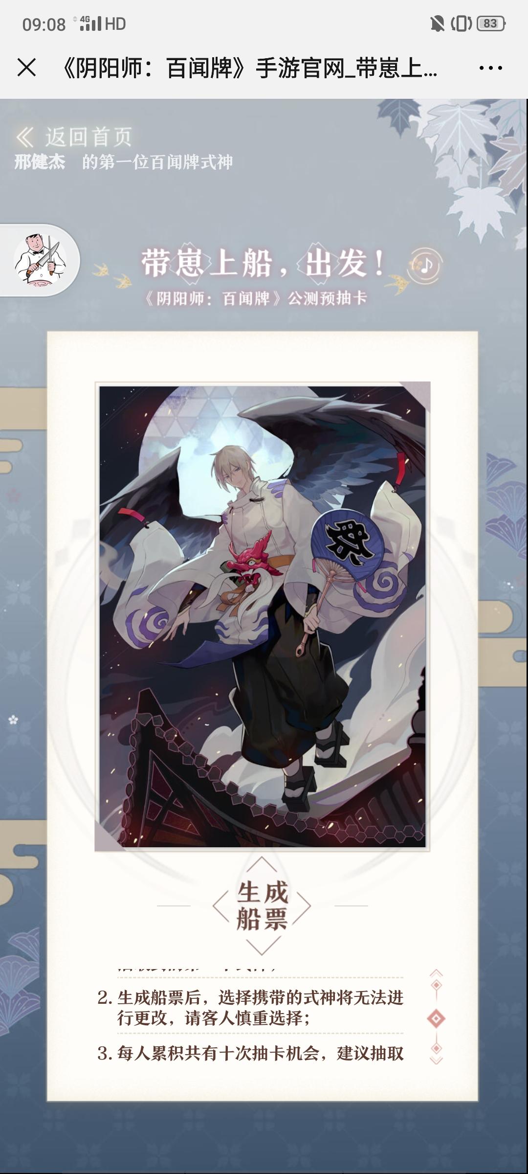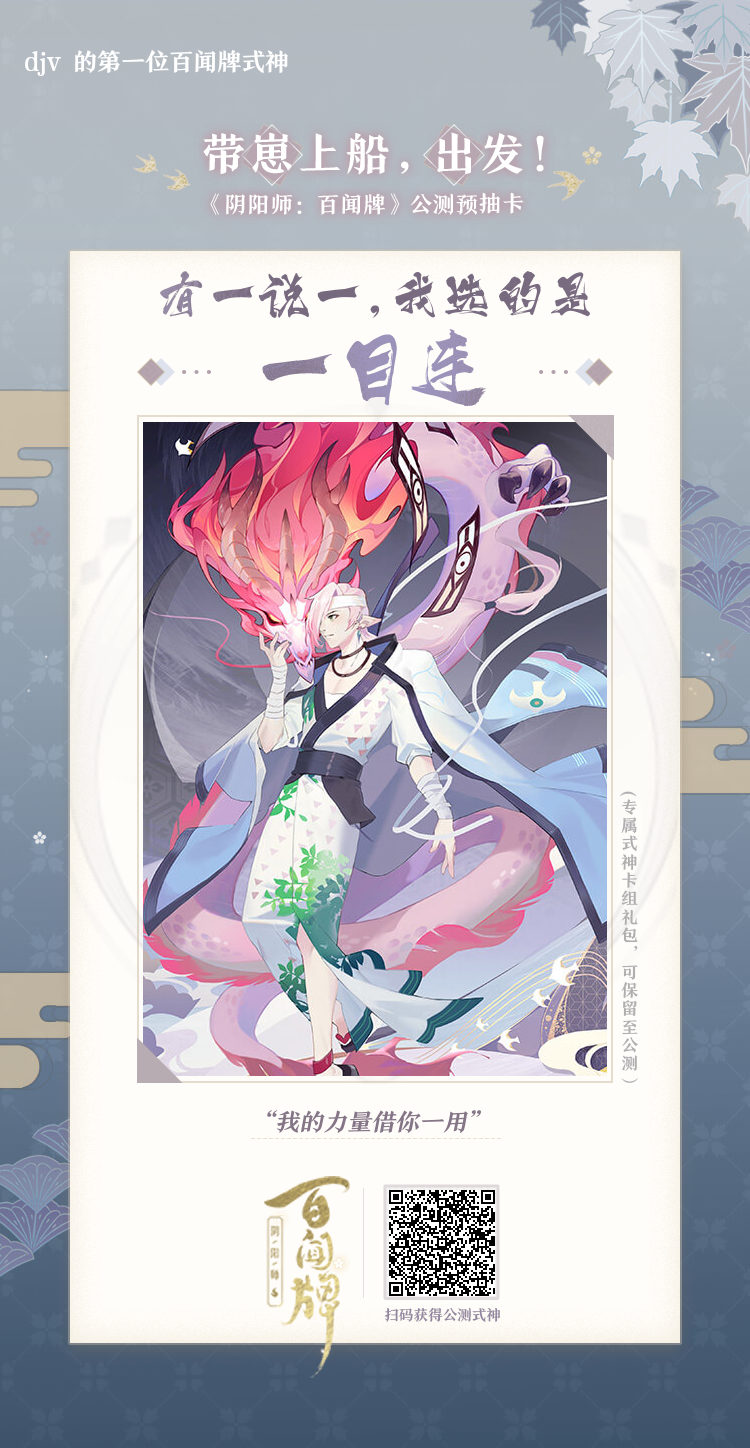 我丢…自己给自己抽到了妖刀姬…限时福利,帮我点一下,你也可以拿公测式神!不拼欧气,《阴阳师:百闻牌》式神点击就有! https://ssr.163.com/m/2019/dzqd/?help_key=b167de8e270740108be23e2580118805&hChannel=netease