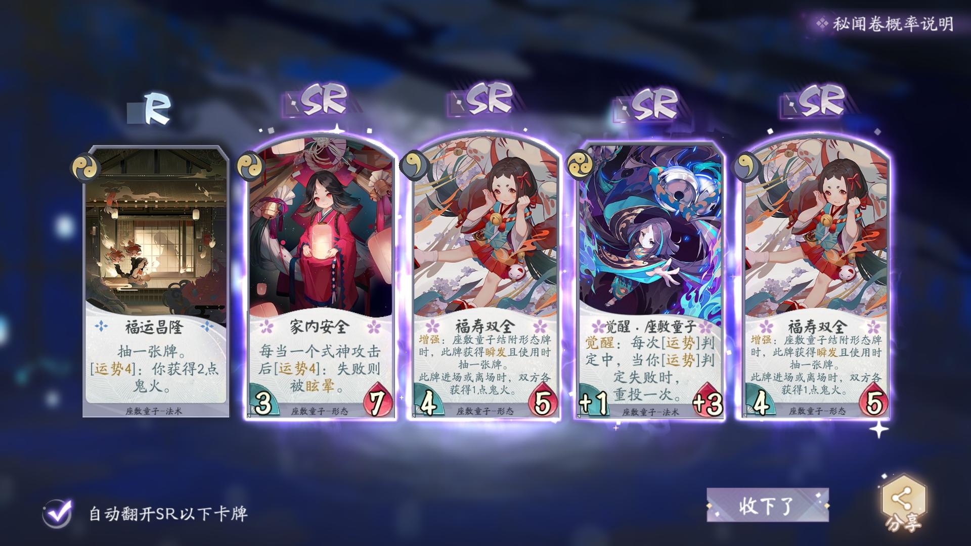 今日印卡收获满满1R,1SR,1SSR。感谢对手!