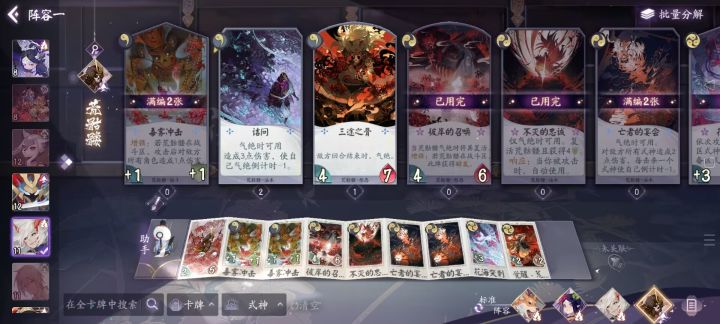 也不能说是小号吧,原来有个满初始式神的号换手机找不回了,后来的也没玩过。尝试了很多种搭配,入夜,蓄力,占卜,蝴蝶等等等等,最后还是烹饪简单快速。累计144胜到名士,其实还是看自己的理解,关键时刻打掉对面的发力点,内战对面升2勾,准时处理五丸(当然可能对面本来就没日和)。打占卜,精确打掉百目鬼,要么不让觉醒,要么觉醒了给处理了。就会好打很多。烹饪的感觉只要够胡,日和准时来或者手里有,保证升2勾前